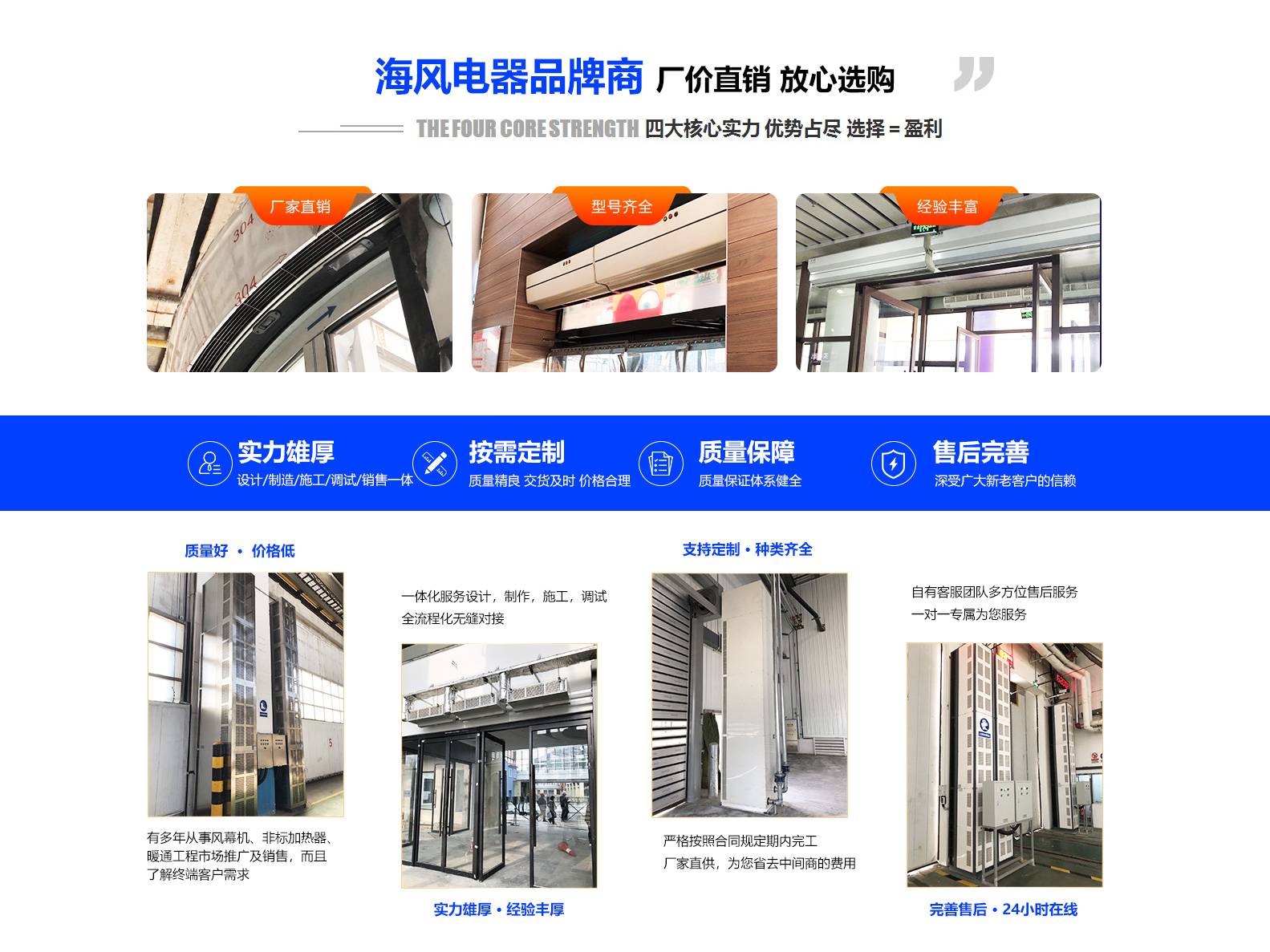 多年從事空調、風幕機、非標加熱器產品銷售,具有良好商業(yè)信譽和服務能力的經銷商網絡做為企業(yè)發(fā)展的源泉?!翱蛻舻男枨缶褪呛oL人的追求”做為海風人的服務理念 ...